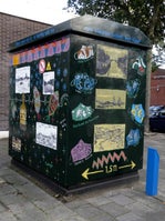 het beschilderen van vele elektrahuisjes.